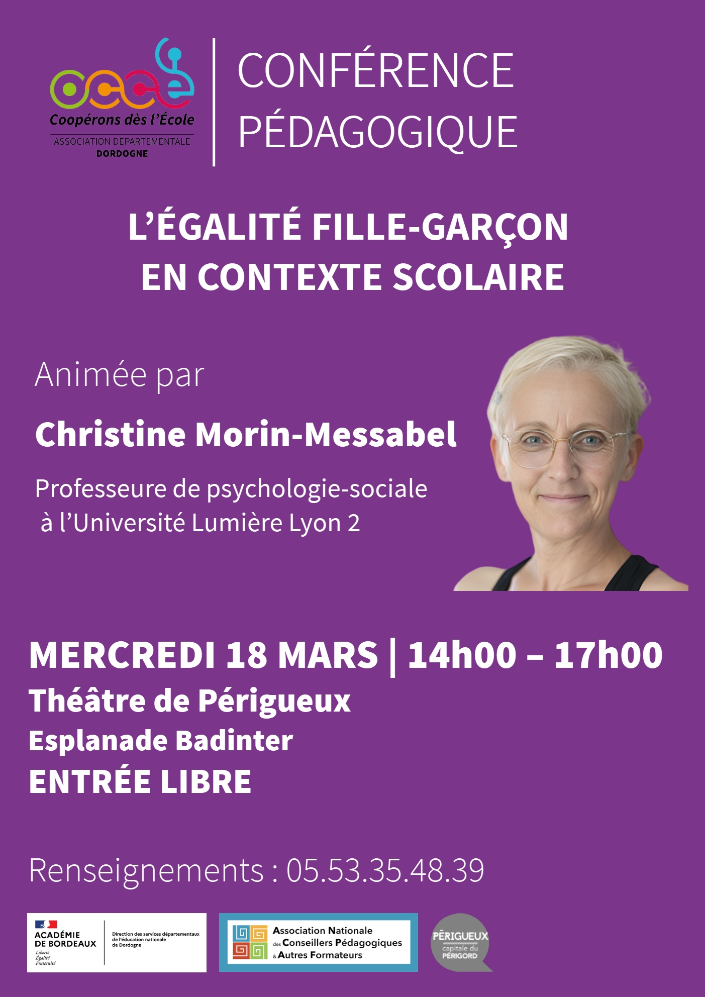 L'OCCE 24 et l'ANCP 24 inscrivent cette formation dans le programme du mois des droits des femmes de la ville de Périgueux